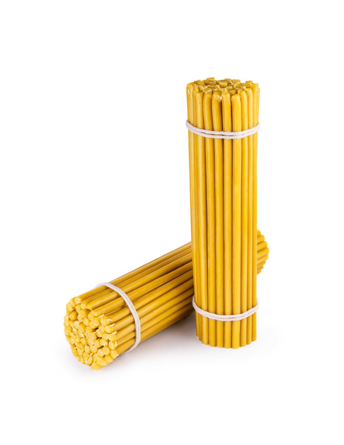 Gelbe Bienenwachs-Kirchenkerzen für den Altar – 45 Stück. Hochwertige Ritualkerzen, L 21 cm, Ø 9,0 mm.