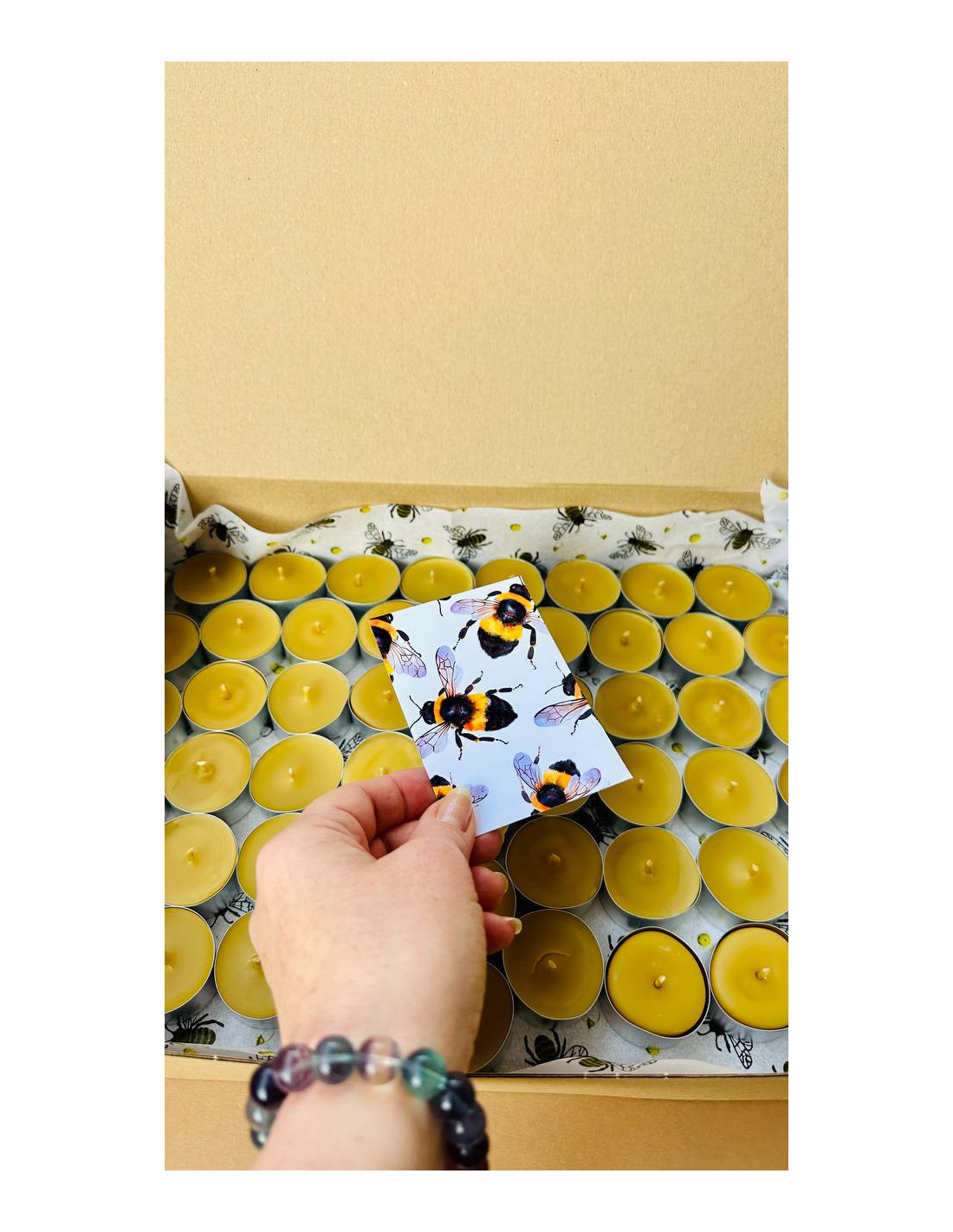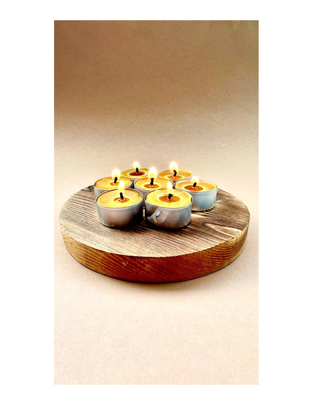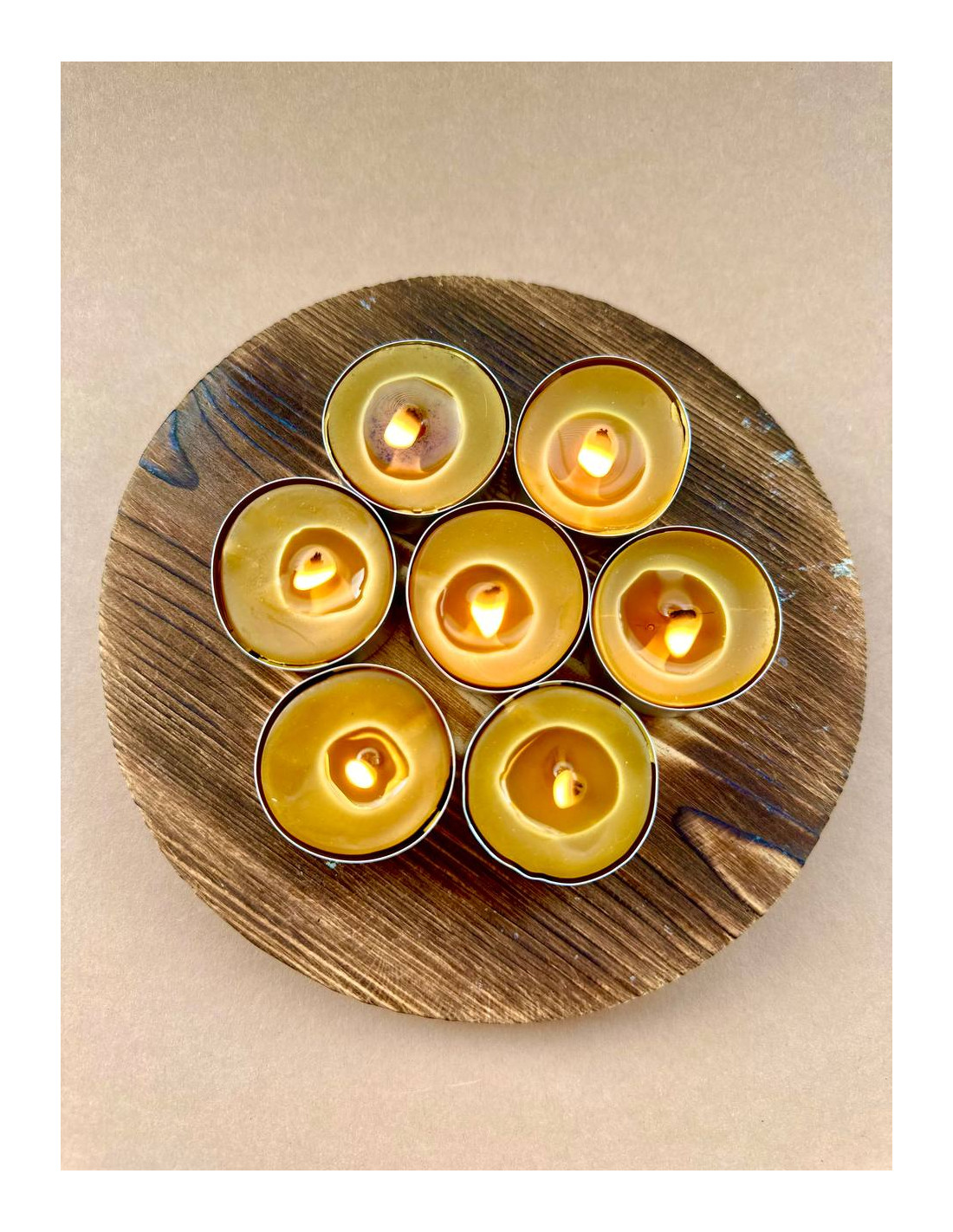 Nous utilisons uniquement notre propre cire d’abeille et des mèches en coton naturel — sans additifs, parfums ni colorants.