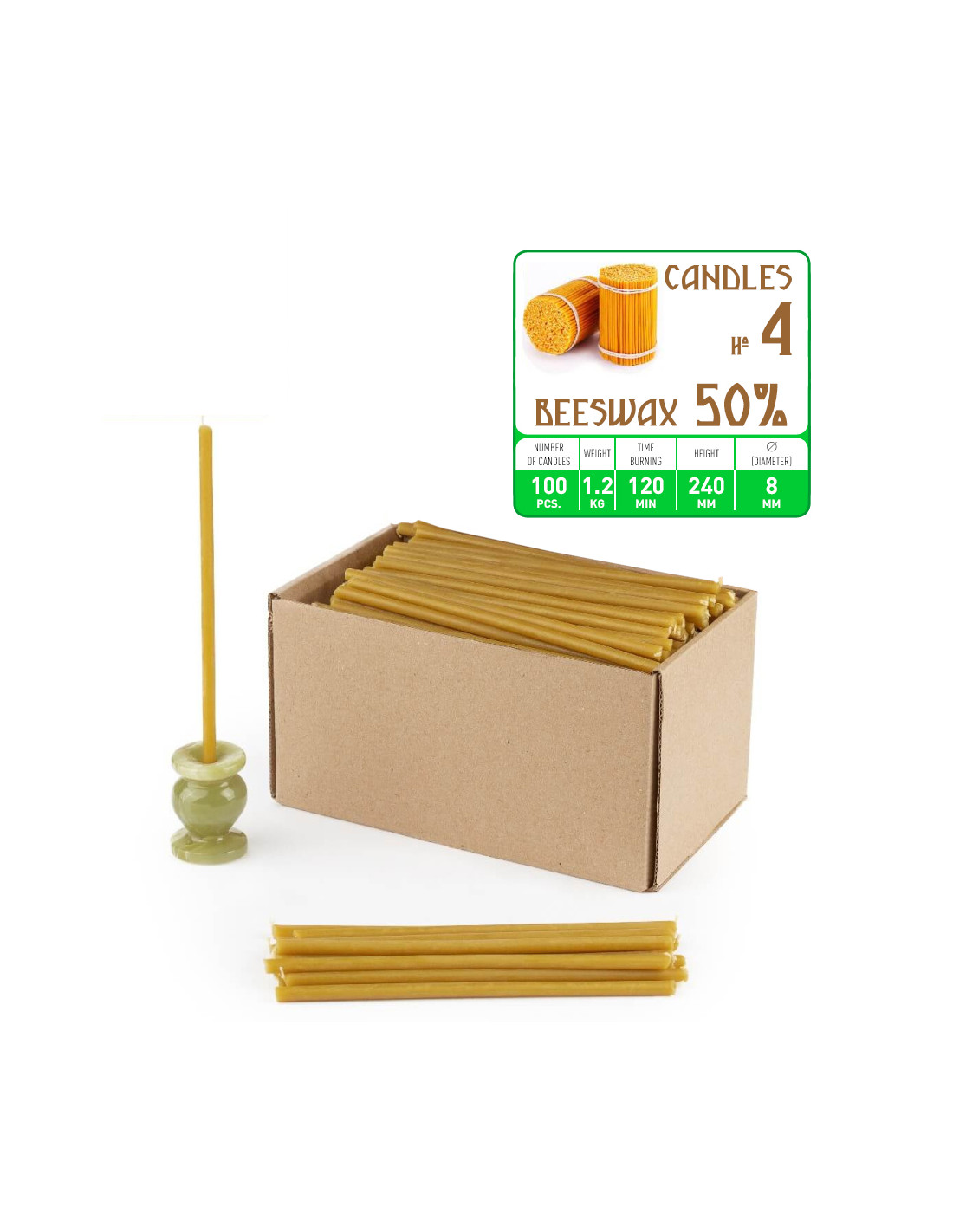 100 pcs (1,2 kilogrammes) bougies d'église, 24 cm de hauteur (9,4 pouces), 0,8 cm d'épaisseur (0,31 pouce).